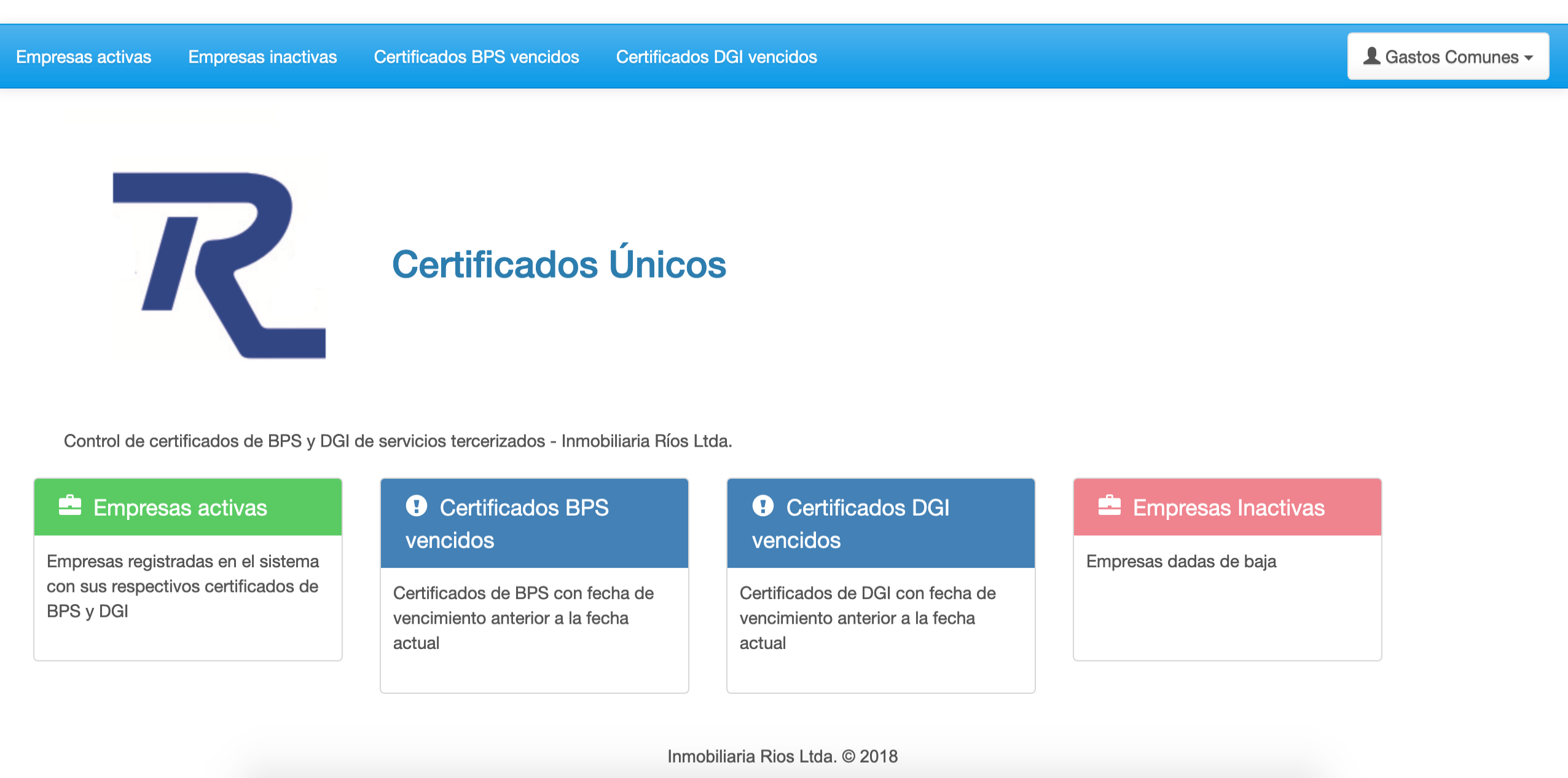 Aplicación web - Control de vigencia de certificados únicos de empresas, para inmobiliaria